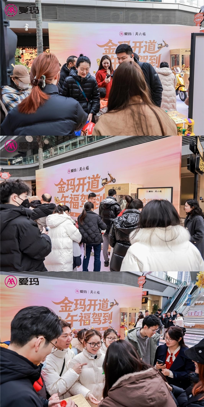 2026年2月1日(农历腊月廿二),马年春节临近之际,爱玛电动车与周六福黄金携手推出的“金玛开道 午福驾到”跨界合作活动在成都COSMO天廊火热启幕。“黄金电动车打卡”“抓黄金小马赢大奖”等趣味环节吸引大批市民游客参与,现场人气爆棚。爱玛官方微博同步播报盛况,号召“本地人速码,外地朋友@搭子共赴好运”,线上线下联动掀起热潮。这场跨界活动不仅为市民送上新春惊喜,更以创新形式解锁生肖营销新玩法,彰显爱玛马年春节营销的时尚洞察与用户思维。