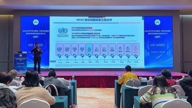 随后免疫规划专家祝小平以13价肺炎疫苗研发结合技术发展与应用价值评价为主题,从疫苗结合技术迭代、免疫原性数据、真实世界保护效果等维度进行深度剖析。他介绍,新一代疫苗采用CRM197与TT双载体工艺,破解了单一载体免疫干扰,优化了免疫原性。